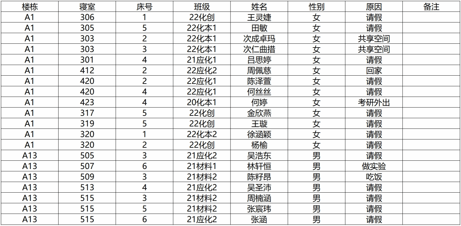 2.若在检查时间段内不在宿舍: