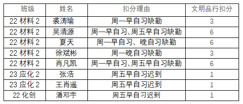 2、根据《云顶7610线路检测大一、大二早晚自习管理规定(201809修订)》,1次早、晚自习缺勤扣3分,学业发展部将在每周在“云顶7610线路检测”微信公众号平台公布本周考勤结果,如对公布的考勤结果有异议请当周周五下午4:30前到员工科办公室11B223说明情况,过时无效。22级、23级联系邹培杰老师。
