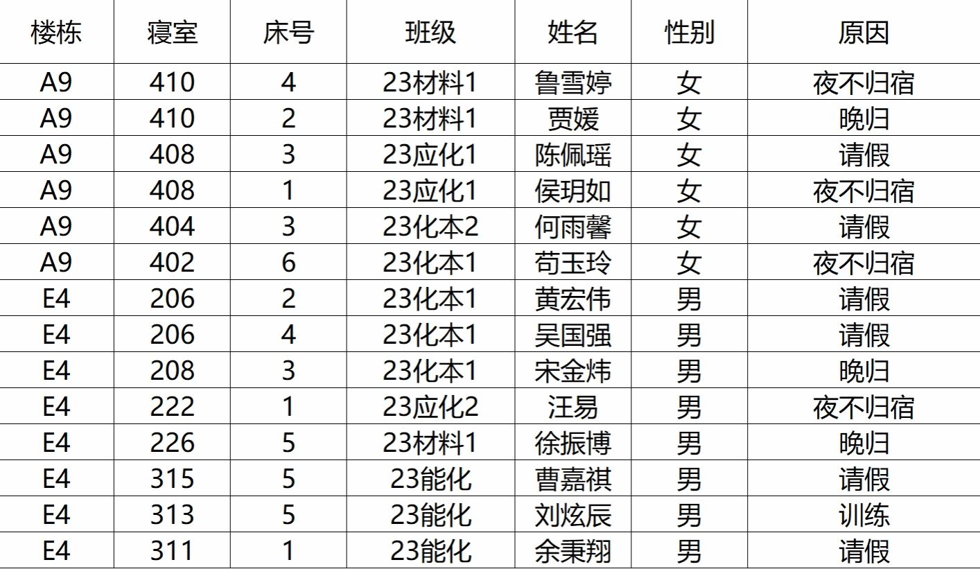 (2)若有员工在其他宿舍舍友可告知其返回核实;