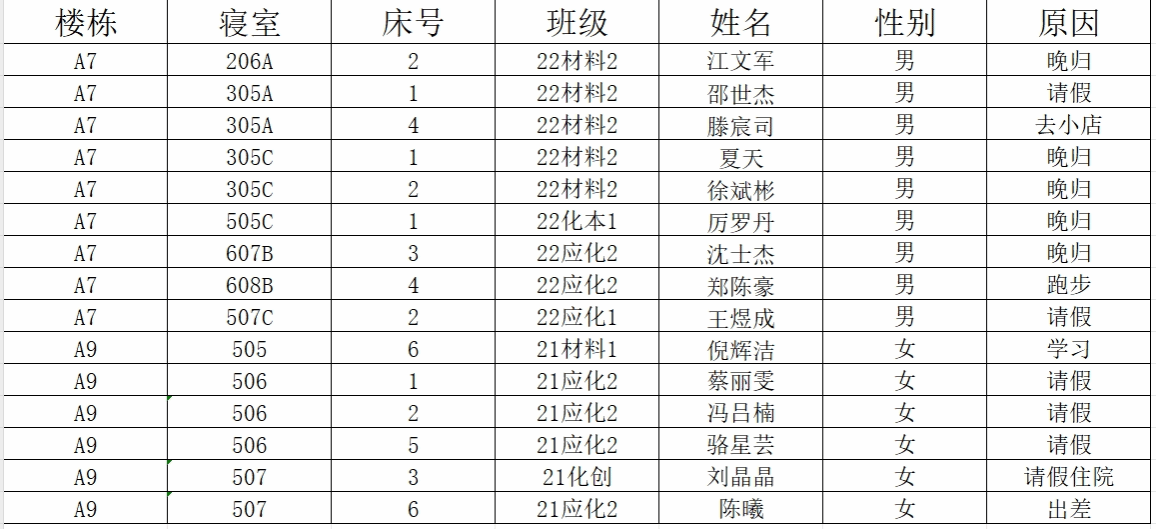 (2)若有员工在其他宿舍舍友可告知其返回核实;