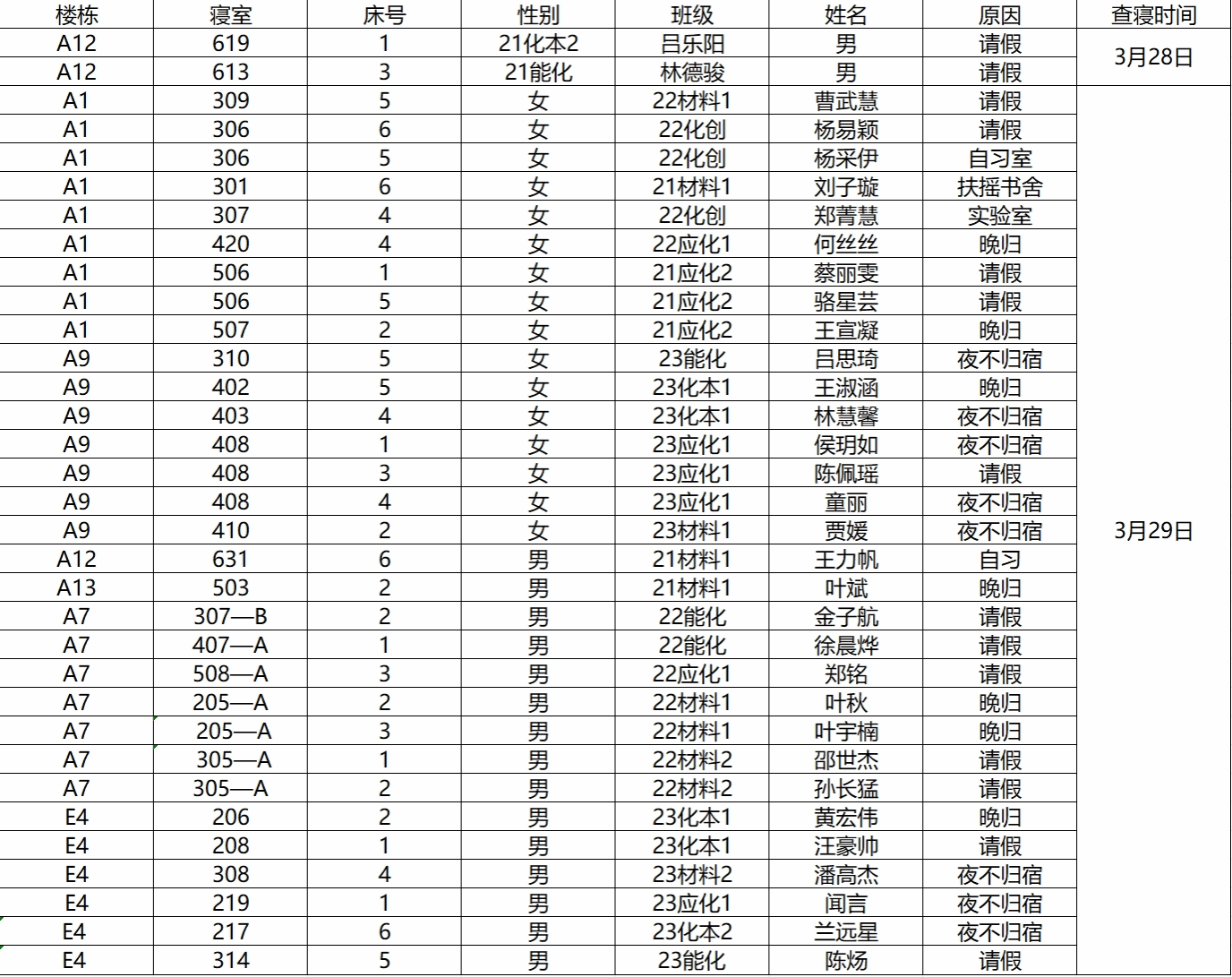 (4)若有员工检查期间未及时返回宿舍,于次日8点到16点之间由本人或委托人至年级辅导员处进行情况说明,逾期将对相关同学进行通报;