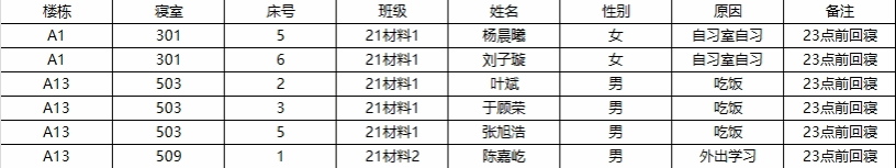 (4)若有员工检查期间未及时返回宿舍,于次日8点到16点之间由本人或委托人至年级辅导员处进行情况说明,逾期将对相关同学进行通报;