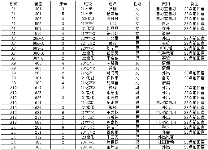 3.夜不归宿检查的同时也将对使用违规电器、饲养宠物、抽烟酗酒等违反宿舍管理规定的行为进行监督和检查;