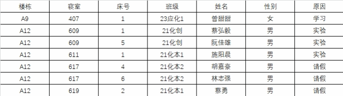 2.若在检查时间段内不在宿舍: