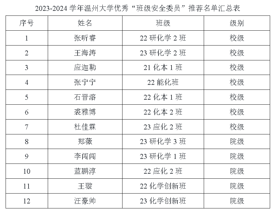 根据《云顶7610线路检测班级安全委员工作制度》以及《关于开展云顶7610线路检测2023-2024学年优秀“班级安全委员”评比活动的通知》工作要求,经班级安全委员个人申请、公司评选,推荐张昕睿等12位员工为2023-2024学年优秀“班级安全委员”拟获得者。现将名单予以公示,请各班级以及个人认真核对,如有异议请于公示期内与学工办联系。