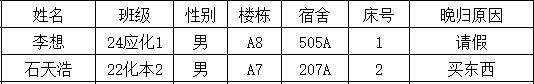 3.夜不归宿检查的同时也将对使用违规电器、饲养宠物、抽烟酗酒等违反宿舍管理规定的行为进行监督和检查;