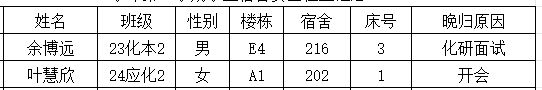(2)若有员工在其他宿舍舍友可告知其返回核实;