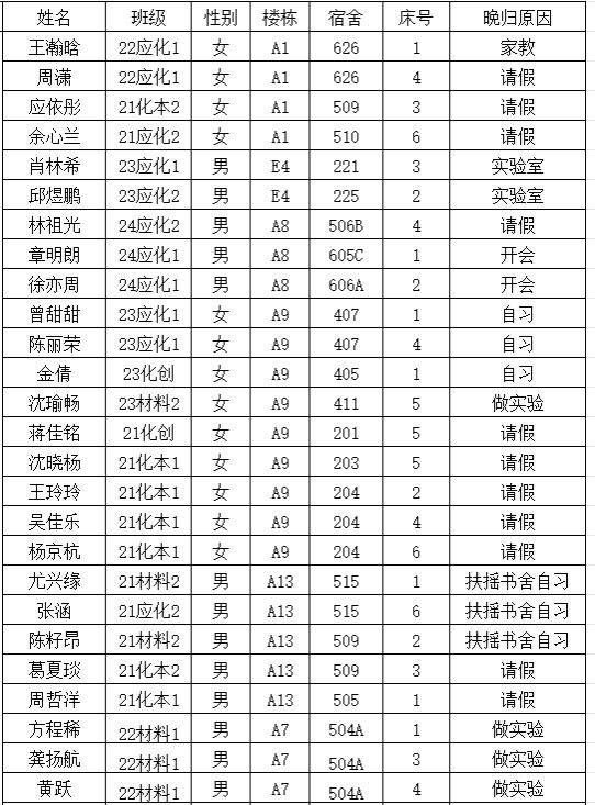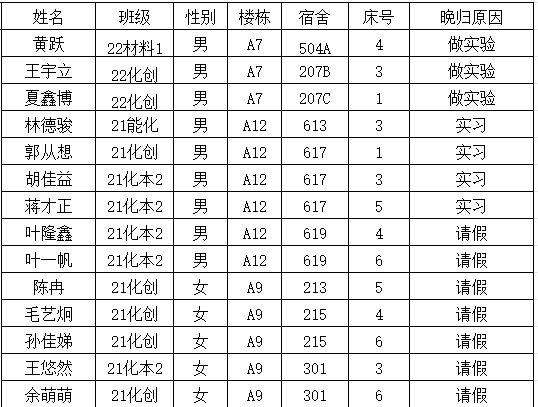 (4)若有员工检查期间未及时返回宿舍,于次日8点到16点之间由本人或委托人至年级辅导员处进行情况说明,逾期将对相关同学进行通报;