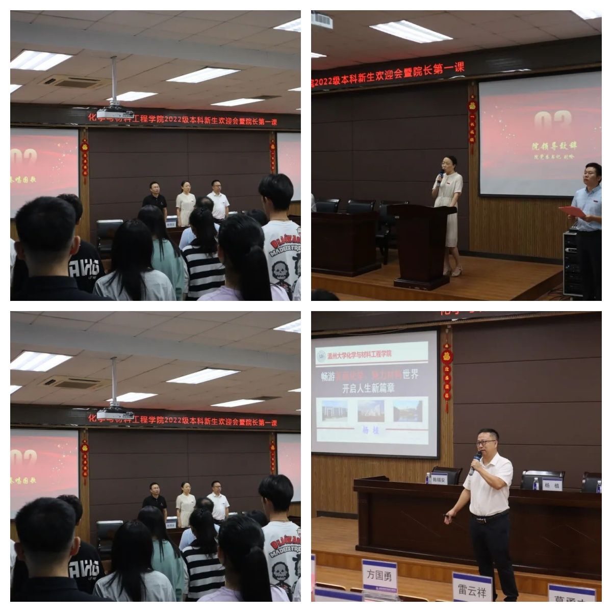 9月14下午,2022级本科新生欢迎会暨经理第一课在化材楼11C401举行。公司经理杨植教授、党委书记刘吟老师、副经理陈锡安教授、党委副书记周敬业老师、各系主任、各科室负责人出席活动。2022级本科生班主任、各年级辅导员、高年级老生代表以及全体2022级本科新生参加活动。活动由公司党委副书记周敬业老师主持。