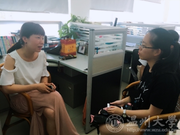 在七月三号这个阳光明媚的日子里,我们开始了我们化材之光暑期社会实践队的第一次外出采访,我们小队负责的是温州外国语公司的陈欢老师。在15化本周怡婷学姐的带领下,我们早上十一点到达公司,并和老师见面采访。