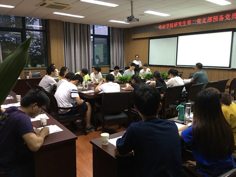 云顶7610线路检测研究生第二党支部于6月13日下午两点,在化材楼11B525召开发展对象吸收为预备党员会议,出席人员有:研究生党建指导老师邹涌彬、支部全体党员以及本次转为预备党员的7名同学,本次活动对其中4名同学(分别是:王梦竹、丁伟杰、张晶晶、周磊)转为预备党员进行充分讨论。 6月13日晚上六点,在化材楼11B204就其他3名同学(分别是:许涛、杨超、金嫦)转为预备党员进行充分讨论。