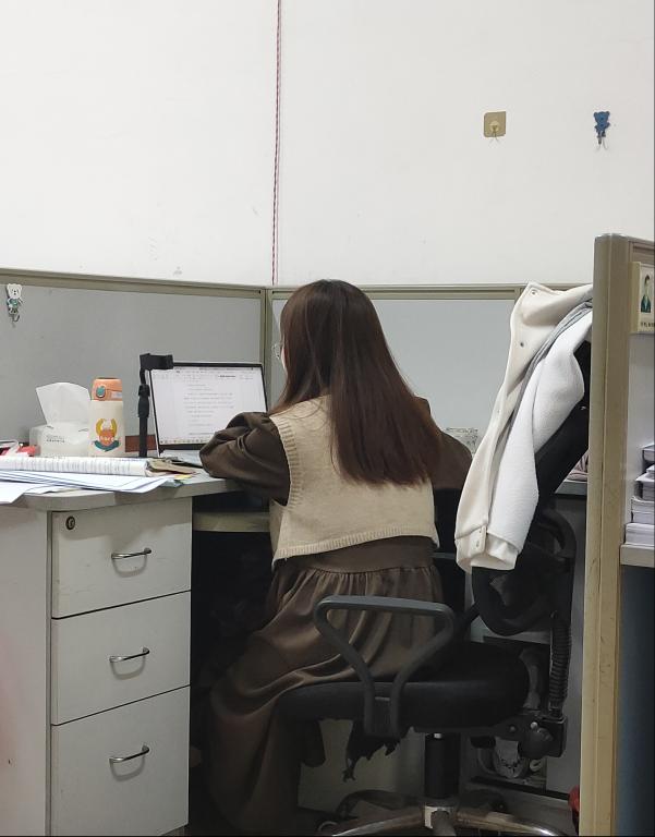 白天的工作结束后,就进入一天工作的尾声:晚自习坐班。尽管实习生们没有被安排到轮值坐班,但只要教室里没有老师坐班时,他们就会到教室中坐班,维持晚自习的纪律并答疑。   1F3F3