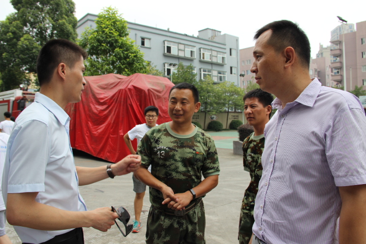 2015年7月17日,云顶7610线路检测“燚焱炎火”暑期社会实践队准时到达瓯海消防局开展活动。公司领导党总支副书记潘从义、员工科科长王壮专门赶来瓯海消防局慰问并一同参与了实践队当天训练。