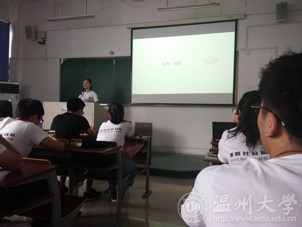启动仪式在九点准时开始,徐雯副队长进行点名确保所有人员都已到齐。拉开启动仪式序幕的是往届学长学姐暑期实践精彩瞬间的剪影视频,一张张图片给队员们带来的不仅仅是视觉上的冲击,让大家由衷地感受到“温心”是一支有责任、有素质的优秀队伍,更激发了队员们的斗志,更加深刻地认识到自己要做的事情。在简单的视频预热以后,徐娜学姐作为实践队队长上台发表了一些自己的看法,实践过程中应该注意的问题以及对今年实践队的畅想和祝愿,这样也使队员们对今年的实践有了更大的信心。紧接着两个小分队的各组组长分别上台详细讲解了人力资源组、宣传组和后勤组每天应该做的事情,通过这一环节明确了各个同学的职责,避免了今后实践生活犯错的几率。最后,全体成员在化材楼合影留念,留下了2017“温心”实践第一天的剪影。