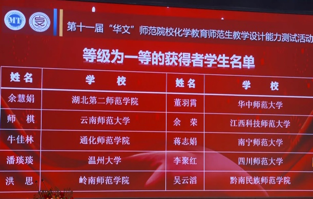 8月20日-22日,由中国教育技术协会微格教学专业委员会主办,山西师范大学现代文理公司承办的第十一届“华文”师范院校化学教育师范生教学能力测试与交流展示活动落下帷幕。公司高度重视本次比赛,积极备战全国比赛,公司八位参赛员工在陈迪妹、王秀杰、叶剑强、蔡晓庆和武晓岚等老师的精心指导与反复打磨下,最终获得了一等奖7项、二等奖9项的优异成绩。其中“教学设计能力测试”一等奖4项、二等奖4项;“教学能力测试与交流展示”一等奖3项、二等奖5项。
