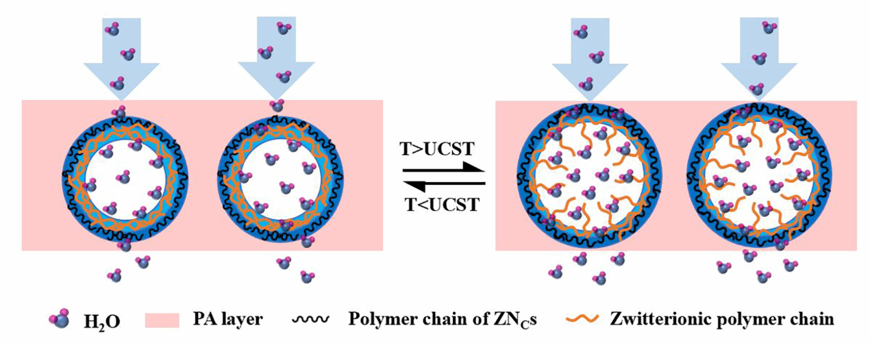 图9. 构建国际首例的大通量温敏性纳米胶囊复合聚酰胺纳滤膜