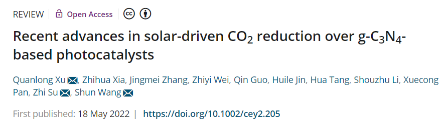 利用光催化技术将CO2转化为燃料和化工原料的碳循环方案,对于解决能源危机及其排放问题具有重大意义,是目前实现碳循环的一种有效策略。近年来,在光催化CO2还原领域已涌现出大量的研究成果,然而仍缺乏高效稳定的CO2还原催化剂。作为一种典型聚合物半导体材料,石墨相氮化碳(g-C3N4)具有无金属元素、电子结构可调控、低成本以及易于合成等优点,在光催化领域具有广泛的应用。另外,得益于其较强的还原能力和可见光吸收特性,g-C3N4在光催化CO2还原领域中具有很大的优势。迄今为止,已有大量研究分析了g-C3N4基光催化剂进行CO2还原反应的影响因素,并提出多种策略以改善其催化性能。因此,我们对g-C3N4基光催化剂在CO2还原方面的研究工作进行了系统全面的讨论和总结。