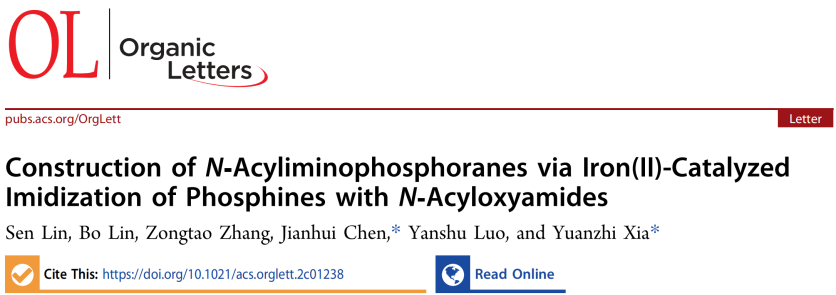 论文题目:Construction of N Acyliminophosphoranes via Iron(II)-Catalyzed Imidization of Phosphines with N Acyloxyamides.