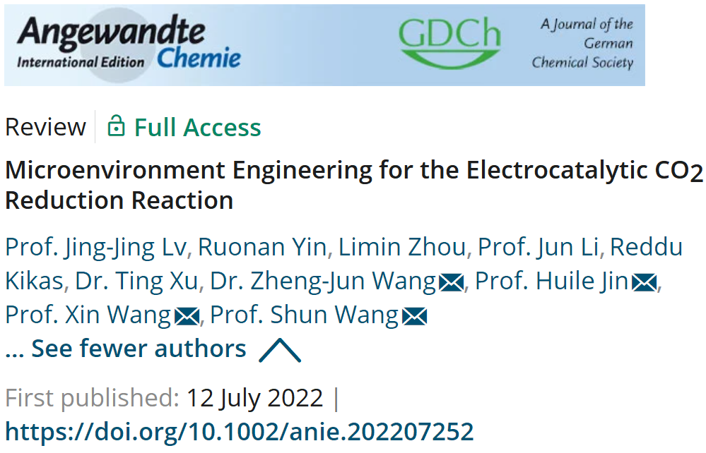 近日,国际顶级学术期刊《Angewandte Chemie International Edition》在线发表公司云顶7610线路检测王舜教授课题组有关电化学还原二氧化碳的综述论文“Microenvironment Engineering for the Electrocatalytic CO2 Reduction Reaction”(微环境调控电化学还原CO2反应性能)。