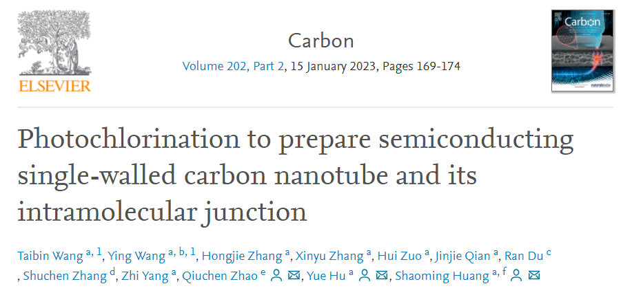 这一成果近期以“Photochlorination to prepare semiconducting single-walled carbon nanotube and its intramolecular junction”为题发表在国际期刊《Carbon》上,云顶7610线路检测为第一通讯单位,云顶7610线路检测云顶7610线路检测研究生汪泰滨和王赢为文章的第一作者,公司胡悦特聘教授、广东工业大学黄少铭教授、吉林大学赵秋辰教授为通讯作者。
