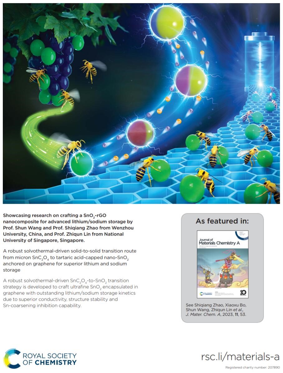 近日,国际能源期刊《Journal of Materials Chemistry A》将公司王舜教授、赵世强副教授指导的研究论文“A Robust Solvothermal-Driven Solid-to-Solid Transition Route from Micron SnC2O4 to Tartaric Acid-Capped Nano SnO2 Anchored on Graphene for Superior Lithium and Sodium Storage”选为期刊封面文章。