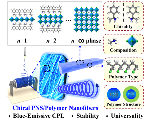 Wen, Z., Lu, R., Gu, F., Zheng, K., Zhang, L., Jin, H., Chen, Y., Wang, S., Pan, S., Enabling Efficient Blue-Emissive Circularly Polarized Luminescence by In Situ Crafting of Chiral Quasi-2D Perovskite Nanosheets within Polymer Nanofibers. Adv. Funct. Mater. 2022, 2212095.
