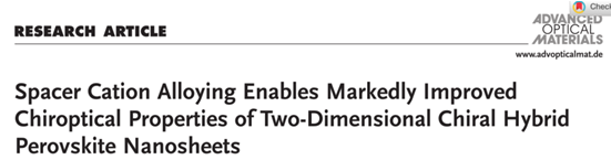 Rong Lu, et al. Spacer Cation Alloying Enables Markedly Improved Chiroptical Properties of Two-Dimensional Chiral Hybrid Perovskite Nanosheets. Advance Optical Materials, 2022, 2202290.