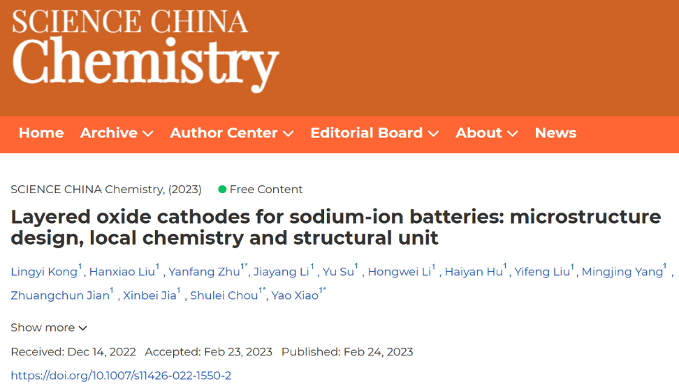 该成果以“Layered oxidecathodes for sodium-ion batteries: microstructure design, local chemistry and structural unit”为题发表在国内旗舰期刊Science China Chemistry上(IF:10.138,在JCR和《中科院期刊分区表》1区)。云顶7610线路检测作为第一通讯单位,公司2022级硕士研究生孔令益和刘含笑为本文共同第一作者。公司肖遥/侴术雷/朱燕芳教授为本文的通讯作者。