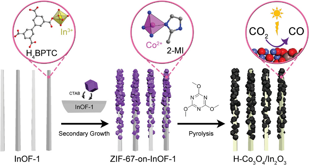 Cheng Han, Xiaodeng Zhang, Shengsheng Huang, Yue Hu, Zhi Yang, Ting-Ting Li, Qipeng Li, Jinjie Qian. MOF-on-MOF-Derived Hollow Co3O4/In2O3 Nanostructure for Efficient Photocatalytic CO2 Reduction. Adv. Sci., 2023.