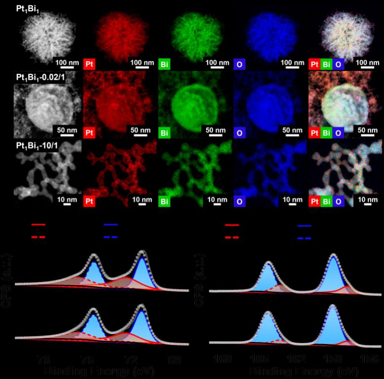 近期公司胡悦特聘教授团队联合北京理工大学杜然教授、普渡大学王进莹博士在MAs形貌调控方面取得新进展,同时对MAs的光电催化性能进行深入研究。相关成果以标题“Leveraging Ligand and Composition Effects: Morphology-Tailorable Pt-Bi Bimetallic Aerogels for Enhanced (Photo-)Electrocatalysis”(DOI:10.1002/smll.202301288)发表在Small上。在该工作中,通过协调配体和组成效应,成功制备了以0D纳米粒子、1D核壳纳米线、2D纳米片和3D微球为NBBs构筑的金属气凝胶,扩展了MAs的结构多样性。以甲醇氧化反应为模型反应,通过调整Pt-Bi气凝胶的形貌与光学特性,在300 mW·cm-2紫外线照射下,气凝胶的催化电流密度高达11.98 A·mgPt-1,比光照下的商业Pt/C高6.4倍,优于所有已报道的基于MAs的MOR电催化剂。本研究不仅为原位制备NBBs可调控的MAs提供了新的途径,而且为高性能MAs基电催化剂和光电催化剂的制备提供了新的角度。公司研究生硕士生薛耿为本文第一作者,云顶7610线路检测为第一通讯单位,通讯作者为云顶7610线路检测胡悦特聘教授、北京理工大学杜然教授及普渡大学王进莹博士。