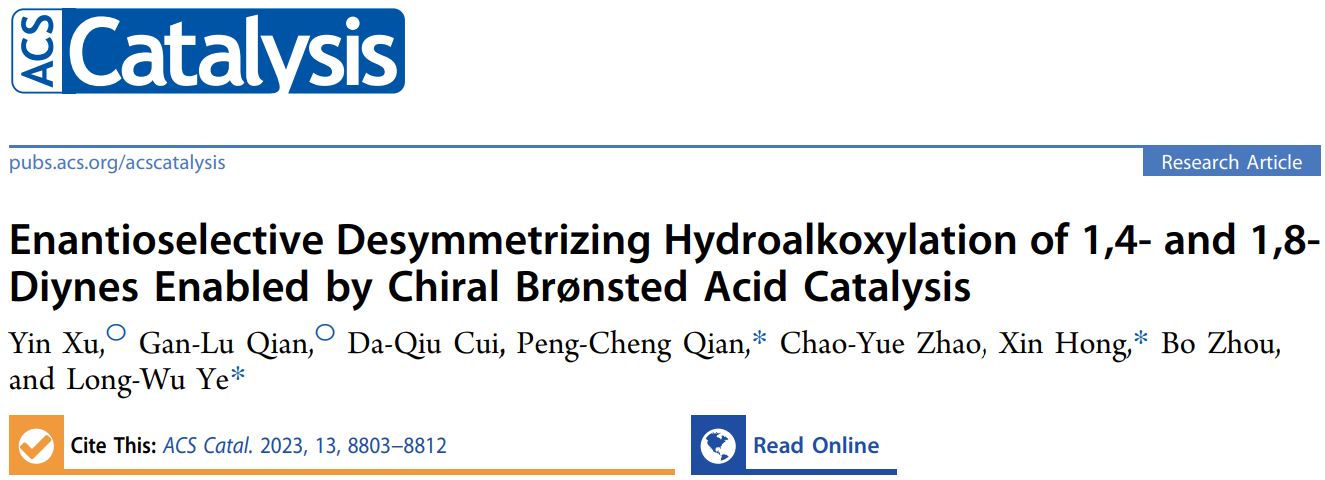 这一成果近期发表在ACS Catalysis (DOI: 10.1021/acscatal.3c01680),云顶7610线路检测为第一单位,我院博士后许胤为第一作者,我院钱鹏程教授、厦门大学叶龙武教授、浙江大学洪鑫教授为共同通讯作者。