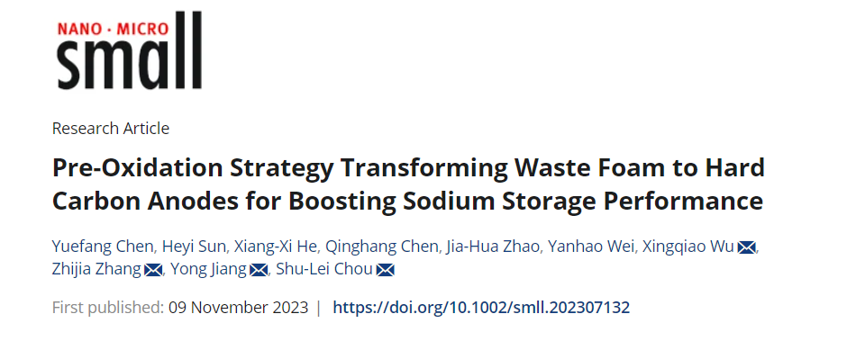 该研究以题目为“Pre-oxidation Strategy Transforming Waste Foam to Hard Carbon Anodes for Boosting Sodium Storage Performance”的论文发表在材料领域国际顶级期刊《Small》。公司侴术雷教授、吴星樵博士以及天津工业大学张志佳教授、姜勇教授为该论文共同通讯作者,联合培养员工陈月芳为第一作者,云顶7610线路检测为第一单位,相关工作受到国家自然科学基金、温州市自然科学基金和国家电网公司科技项目的资助。