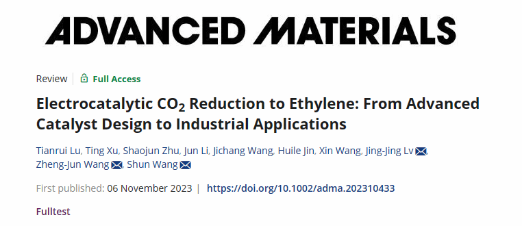 该综述以“Electrocatalytic CO2 Reduction to Ethylene: From Advanced Catalyst Design to Industrial Applications”为题发表在国际顶级期刊⟪Advanced Materials⟫期刊上。云顶7610线路检测为第一通讯单位,我院2021级硕士生陆天睿、云顶7610线路检测博士后徐婷为共同第一作者,我院吕晶晶教授、王正军博士、王舜教授为共同通讯作者。