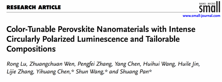 这一研究结果以“Color-Tunable Perovskite Nanomaterials with Intense Circularly Polarized Luminescence and Tailorable Compositions”为题发表在国际期刊《Small》(IF=13.3),云顶7610线路检测作为唯一通讯单位,公司2020级硕士研究生陆蓉为第一作者,公司潘霜副教授、陈亦皇教授、王舜教授为本文通讯作者。该工作受到中国自然科学基金(No.62104170和22109120)、浙江省自然科学基金会(LY23F040001和LQ21B030002)的资助。