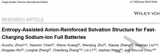 近日,公司碳中和技术创新研究院李林团队联合安徽大学张朝峰在国际权威期刊Angew. Chem. Int. Ed.上发表题为《Entropy-Assisted Anion-Reinforced Solvation Structure for Fast-Charging Sodium-Ion Full Batteries》的学术论文。本文提出了一种具有阴离子增强型溶剂化结构和高离子电导率的混合酯醚电解液,诱导阴离子衍生的坚固电极-电解液界面的形成。将弱溶剂化的醚基溶剂四氢呋喃(THF)引入到碳酸丙烯酯(PC)基电解液中,记为1.0 M NaPF6-PC/THF,调节更多的PF6-阴离子参与到Na+内鞘中,加速脱溶过程。此外,由熵效应引起的分子多样性增加的弱溶剂化结构可以增强离子电导率和快速的界面动力学。18650圆柱PB||HC全电池在100次循环后容量保持率为82.5%。这项工作强调了熵辅助的混合酯醚电解液在高性能钠离子电池中的潜力。相关文章发表在Angew. Chem. Int. Ed.上,公司侴术雷教授、李林特聘教授以及安徽大学张朝峰为该论文共同通讯作者,相关工作受到国家自然科学基金、安徽省自然科学基金、浙江省自然科学基金、国家电网科技计划等项目的支持。