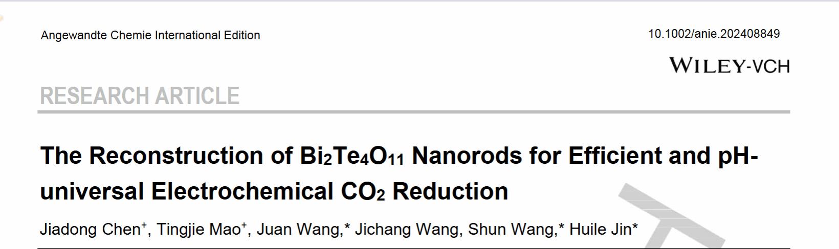 近日,公司王舜/金辉乐/王娟团队在国际顶级期刊《Angew. Chem. Int. Ed.》发表题为“The Reconstruction of Bi2Te4O11 Nanorods for Efficient and pH-universal Electrochemical CO2 Reduction”的论文。在这项工作中,通过在CO2RR条件下原位重构Bi2Te4O11 NRs来开发Te修饰的Bi纳米棒(Te-Bi NRs)。使用原位X射线衍射(XRD)和原位拉曼光谱对CO2RR过程中Bi2Te4O11 NRs的复杂重构过程进行了全面分析。该分析揭示了三个不同的步骤:Bi2Te4O11的分解、Te/Bi相的形成和Te的溶解。Te-Bi NRs在CO2RR中对甲酸盐表现出非常高的性能,在所有pH条件下(酸性、中性和碱性)都表现出优异的选择性和稳定性。具体而言,在中性、碱性和酸性条件下的流动池反应器中,在300 mA cm-2的高电流密度下分别实现了高达94.3%、96.4%和91.0%的HCOOH法拉第效率,超过了工业要求(>200 mA cm-2)。值得注意的是,在这种高电流密度下,可以稳定运行120多个小时。结合了密度泛函理论(DFT)计算和原位红外光谱(ATR-FTIR)全面揭示了Te的存在会使得Bi位点的呈现出缺电子状态,从而增强*OCHO中间体的吸附强度,同时显著抑制竞争性HER和CO的产生。