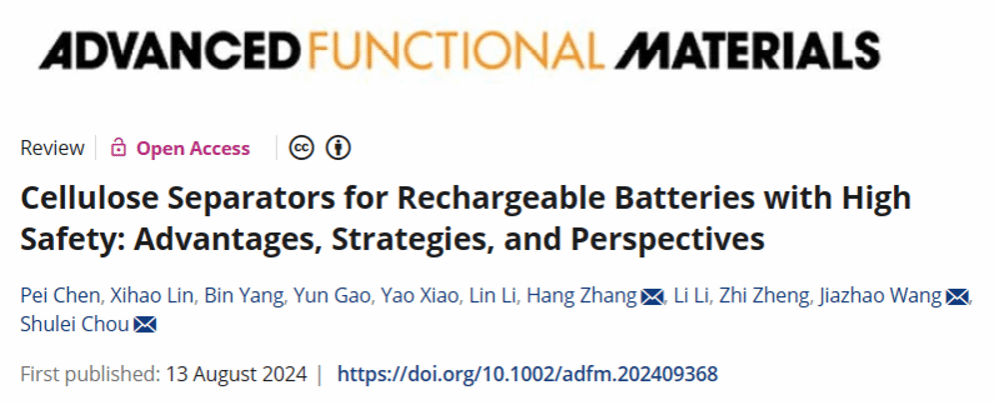 该工作以“Cellulose Separators for Rechargeable Batteries with High Safety: Advantages, Strategies, and Perspectives”为题发表在《Advance Functional Materials》。文章第一作者公司硕士研究生陈霈,通讯作者为云顶7610线路检测侴术雷教授、张杭博士、澳大利亚伍伦贡大学王佳兆教授,第一通讯单位为云顶7610线路检测。该工作得到了国家自然科学基金、中国高端外国专家培养计划、温州市基础研究项目和中国博士后科学基金的资助。