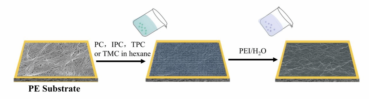 图2. 反相界面聚合(RIP)工艺用于制备PA/PE TFC NF膜