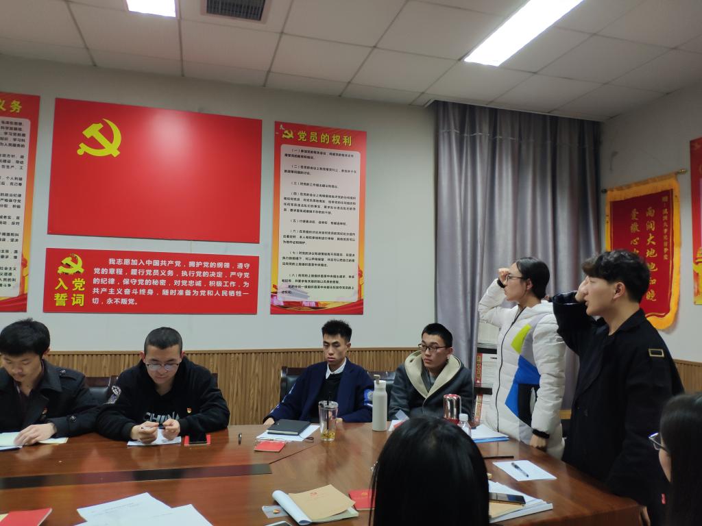 2019年11月29日18:30,云顶7610线路检测研究生第三党支部在化材楼11B-221教工之家召开了预备党员接收大会。本次大会由党支部书记贾雅君同志主持,支部全体党员参加了本次会议。经过长时间的考察和认真的审查,本次大会主要讨论接收冯欣同志、武飞鸿同志为预备党员的问题。