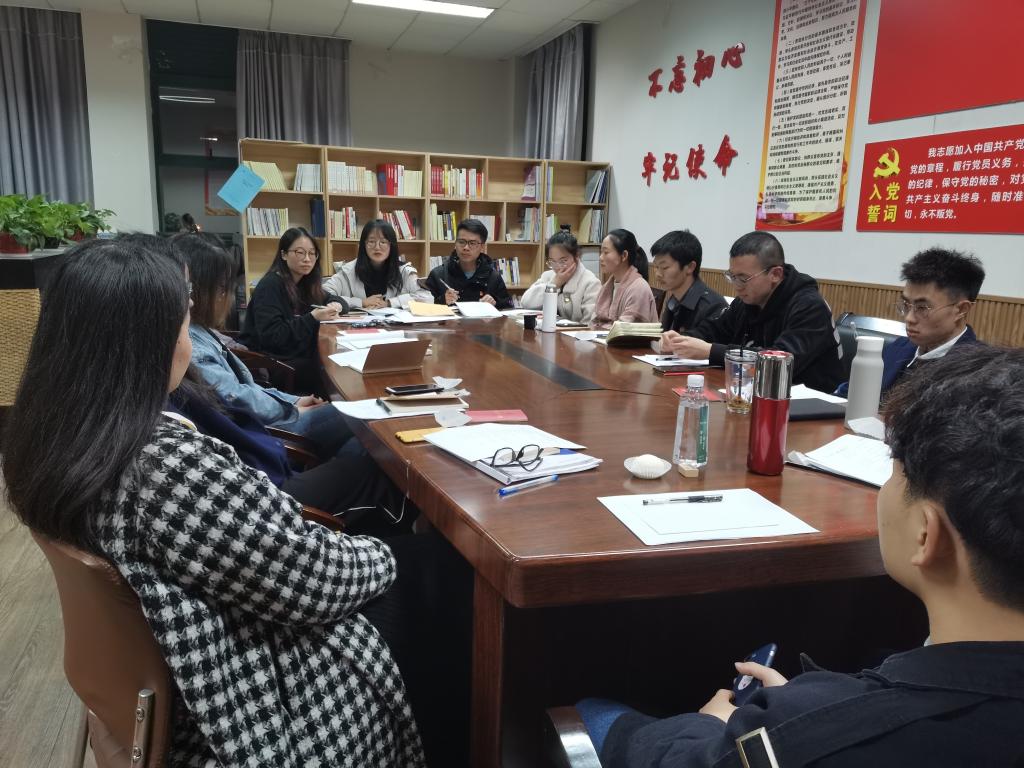 2019年11月29日晚上20:00,云顶7610线路检测研究生第三党支部在化材楼11B-221教工之家召开“不忘初心、牢记使命”主题教育学习会暨民主评议会——对照党章党规找差距。支部全体党员同志参加了此次会议,会议由支部组织委员郑勉虹同志主持。