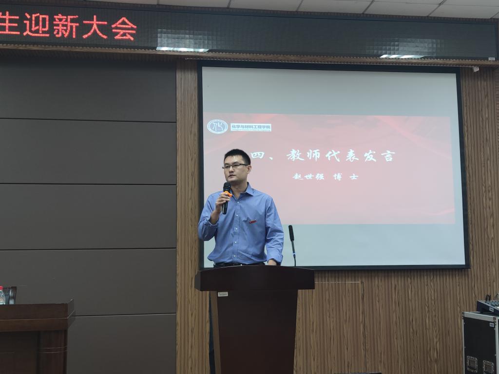 接下来,由化类2班班主任赵世强老师作为班主任代表讲话,他呼吁更多的同学积极参与到学科竞赛、积极参与团体活动等,从而锻炼培养自己的各方面的能力,让自己成为更优秀的人,从而获得更幸福的人生。