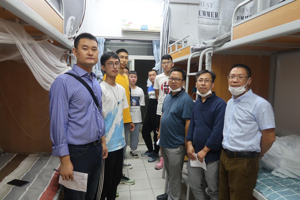 2020年9月25日晚六点,公司领导、辅导员、班主任、新生班主任助理、员工会成员在华表前公司帐篷集合后,分成五支队伍去2020级新生寝室走访。
