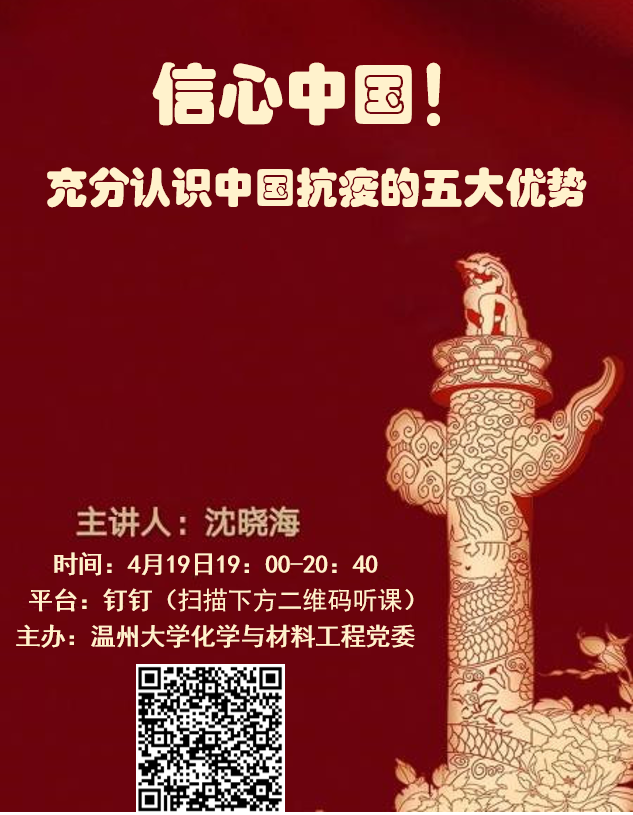 为进一步引导广老员工厚植爱国情怀、坚定理想信念,增强“四个意识”、坚定“四个自信”、做到“两个维护”,坚定在以习近平同志为核心的党中央坚强领导下打赢这场疫情防控战的信心和决心,深刻认识中国抗疫彰显的中国共产党领导和中国特色社会主义制度的显著优势,承担责任使命,努力争当先锋。公司邀请南京师范大学“网红”辅导员沈晓海老师,主讲 《信心中国!充分认识中国抗疫五大优势!》。