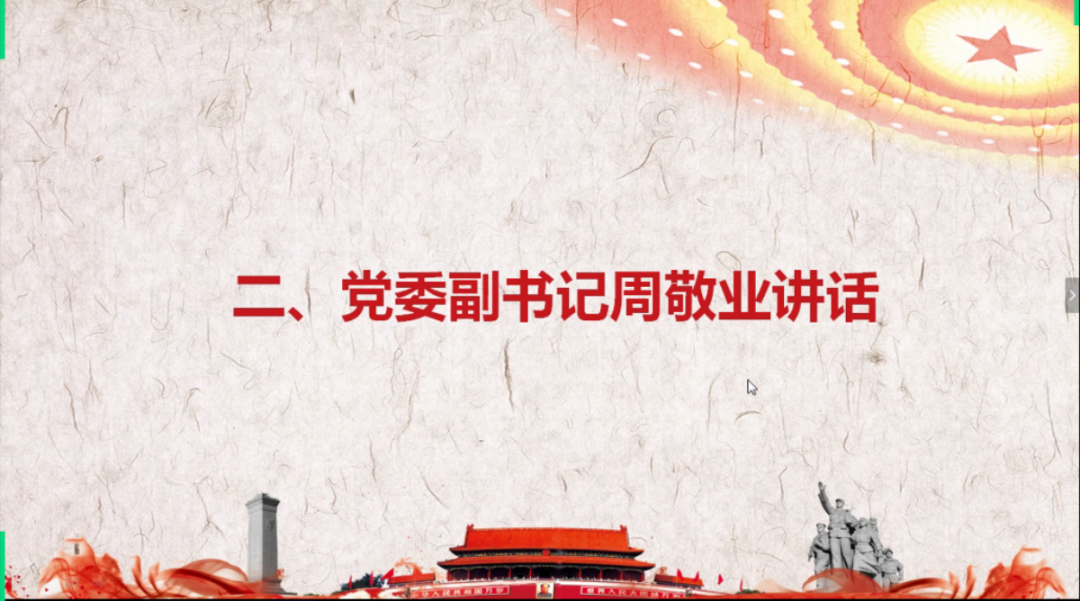 首先发言的是党委副书记周敬业老师,他表扬各中心在疫情时期的辛勤工作。团学工作如今已进入一个新的阶段,这更需要团学每一位成员的努力。周敬业老师提出要求:团学每一位更应在疫情期间以身作则,管控自身,在学习上起到表率作用。老师还指出在疫情期间不信谣,不传谣,思想上坚守党的领导。在未来工作中,发扬优秀学风,向新的学期发起挑战。