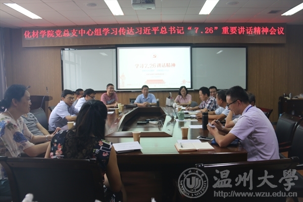 随后,王舜经理强调公司党总支中心组要认真组织学习习近平总书记“7.26”重要讲话精神,进一步增强“四个意识”,坚决维护习近平总书记的领导核心地位,站稳政治立场,把准政治方向,坚定理想信念,做政治上的明白人。同时结合公司自身发展要求,不断加强公司化学专业建设,始终坚持正确育人方向,为实现中国梦输送源源不断的化学型专用人才。