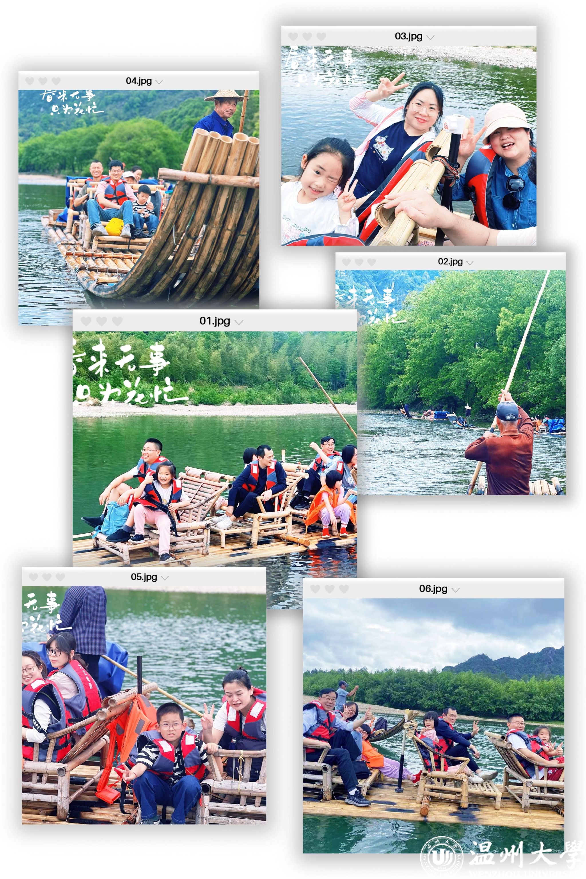 午后竹筏漂流将活动推向高潮。教职工们乘一叶竹筏悠然江上,看两岸青山次第舒展,碧波为笺书写春日絮语。船工撑篙拨开翡翠般的江水,教师们或闭目感受清风拂面,或在碧波荡漾间谈笑风生,体验"人行明镜中,鸟度屏风里"的诗画意境。