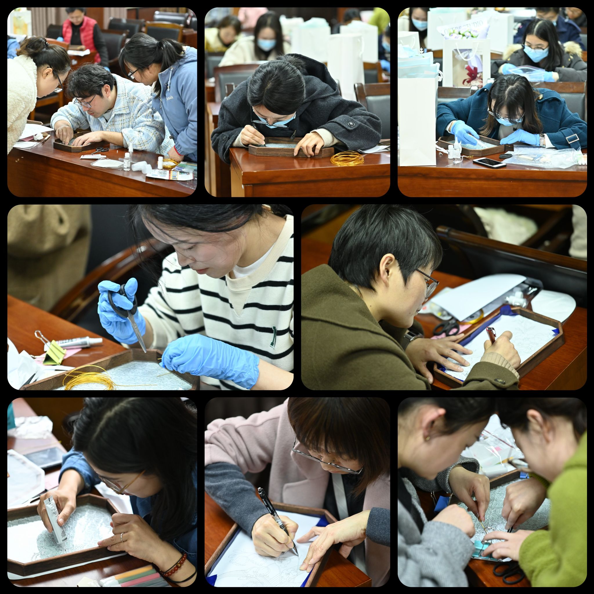 阳春三月,万物复苏。3月7日下午,公司分工会、妇联联袂打造“传承非遗技艺·凝聚巾帼力量”主题活动,在公司208会议室和人才之家举办非遗掐丝珐琅工艺体验活动。五十余位女教师巧手翻飞间,将千年非遗技艺化作献给自己的节日礼物,公司妇联主席刘吟老师与女教职工们共度文化馨香满溢的春日时光。