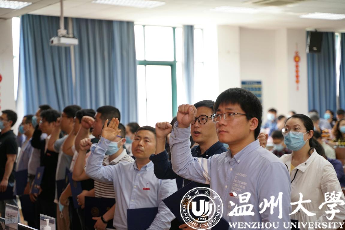 第一阶段:进行2021-2022年新教师入职仪式,2021年至2022年3月,公司共引进高层次人才18人,管理岗3人,一年内注入了二十多位新鲜血液。随后周书记邀请所有新引进的老师上台,由刘吟书记和杨植经理为其颁发入职纪念证书和校徽,最后在刘书记的带领下,一起宣誓:作为一名人民教师,做到有理想信念、有道德情操、有扎实学识、有仁爱之心,为教育发展、国家繁荣和民族振兴而努力奋斗!
