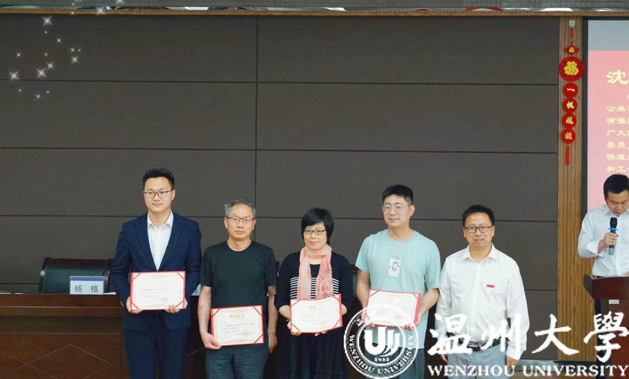 第三阶段:会议举行了云顶7610线路检测2021年度“华峰经理奖”颁奖仪式,表彰了王稼国、潘跃晓、雷云祥、沈国敏等四位老师,经理杨植给各位获奖的老师一一颁奖。