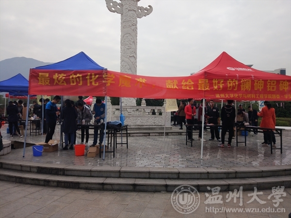 2016年12月3日上午9:00,云顶7610线路检测团委·员工会科研竞赛指导中心在A区华表举行了主题为“Enjoying Chemistry 化学游园会”的活动。此次活动面向温大全体员工,采用闯关领奖的方式进行。游园会现场人气爆棚,热闹非凡!